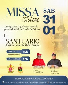 A Paróquia São Miguel Arcanjo, em Magalhães Bastos, e a Arquidiocese de São Sebastião do Rio de Janeiro têm a alegria de convidar todos os