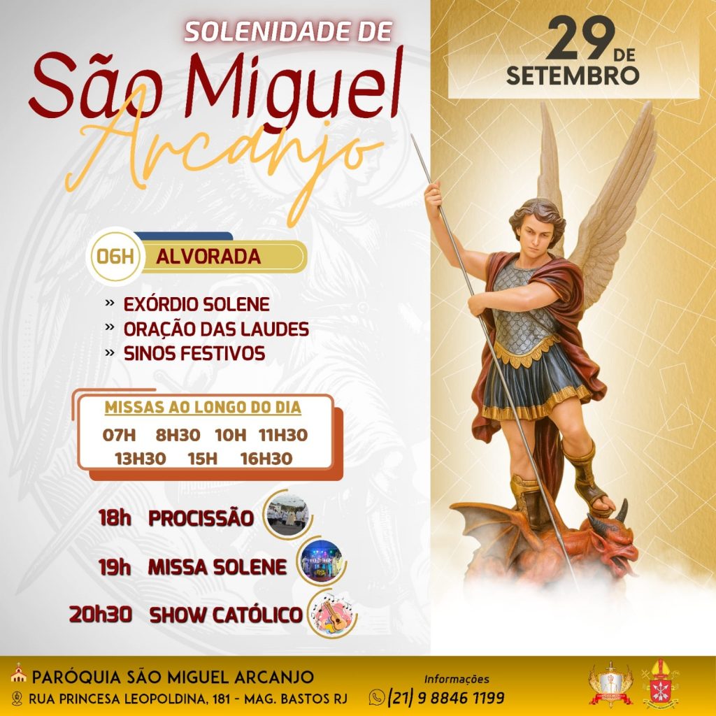 “A solenidade do nosso padroeiro será um momento especial de fé e devoção. Convidamos todos os fiéis, devotos de São Miguel Arcanjo do Rio de Janeiro e região, para participarem das celebrações da Santa Missa, que terão diversos horários ao longo do dia”, destacou o pároco.